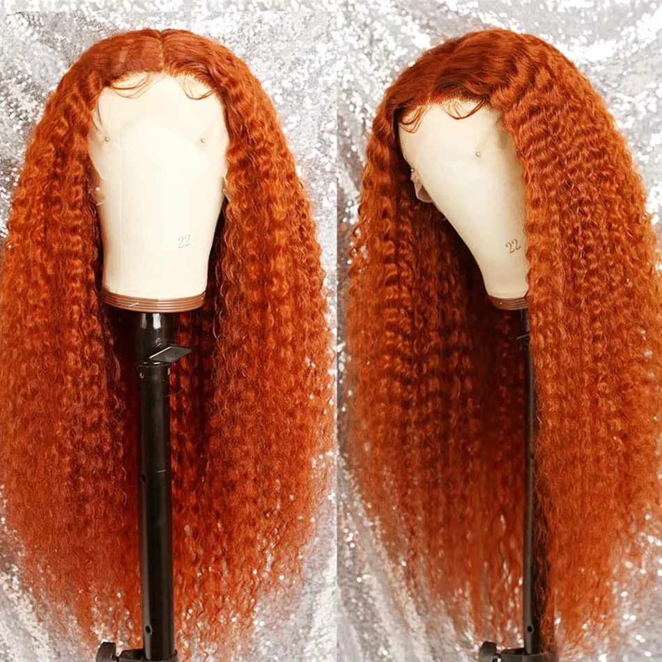 Orange colored Water wave 13x6 hd lace frontal human hair wig Preplucked deep wave 30 inch ginger lace front curly wigs on sale